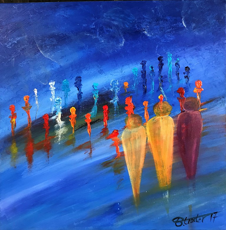 Acrylmalerei auf Leinwand in vielen Farben und Facetten. Abstrakte Bilder entstehen in eher turbulenten Phasen oder in Momenten, wo ich meine Gedanken einfach fallen lassen möchte. Viele verschiedene Materialien können dazu ganz einfach in das Bild eingebaut werden. Das ist spannend und lässt immer wieder ganz andere Anregungen entstehen. Du kannst dich entfalten und entspannen.